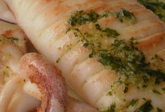 Engrasar la plancha con aceite de oliva, una vez caliente poner el calamar y dejar que se haga por ambos lados hasta que coja el color dorado. ( si es necesario hacerles unos cortes longitudinales por la parte de las aletas para que no se doble).