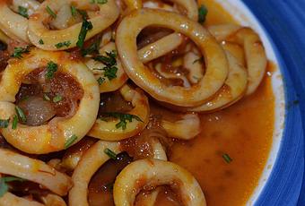 Esta es una manera deliciosa de cocinar los calamares tan populares en nuestro recetario. En este caso he añadido curry, un toque exótico, combinado con los tomates y las hiervas aromáticas, ingredientes clásicos de la cocina mediterránea.Este plato es un ejemplo de la famosa dieta mediterránea, posee un alto contenido en vitamina E, antioxidantes y ácidos grasos. Para que los calamares queden tiernos, un buen truco es el de congelarlos, ya que así se rompen las fibras de sus carnes. Yo los he cocinado sin congelar.