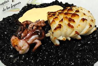 En lugar de hacer los calamares a la plancha por un lado y el arroz negro por otro prepara todo junto en la misma cazuela, es otra versión muy interesante (pincha en la fotografía para ver su elaboración).