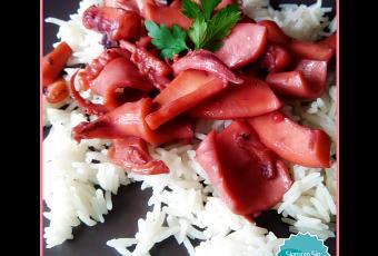 - Agregar los calamares, la sal y programar 16 minutos, Temperatura Varoma, Giro a la izquierda, Velocidad 1.