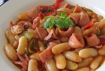 A la hora de preparar legumbres, los ingrediente que más me gusta para acompañarlas son los marinos, ya sean mariscos, cefalópodos o algún pescado con textura, en cuanto a las legumbres me da igual, lentejas, pochas, garbanzos, alubias o fabas, que fueron las elegidas en esta ocasión, porque son de mi cosecha, pero esta receta la hago muchas veces con alubias, incluso de las envasadas.