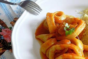 Para mañana os propongo un plato que a mi me encanta. Los calamares en salsa con cous cous es uno de esos platos que no me canso nunca de comer. Con salsa americana están riquísimos!!