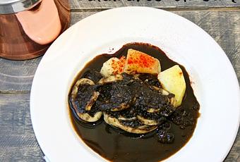 Ingredientes:50 gr. de cebolla 2 dientes de ajo50 gr. de aceite de oliva virgen exgtra100 gr. de tomate triturado1000 gr. de calamares en aros o en trozos3 bolsitas de tinta de calamar200 gr. de brandy o vino blanco1 cucharadita de sal 1 pellizco de pimienta (al gusto)