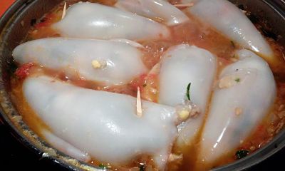 Rellena los calamares y sujeta la parte superior con un palillo para que no se salga el relleno.