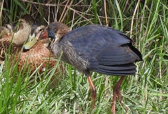 El Calamón (Porphyrio porphyrio), presenta diferencias notables entre juveniles y adultos.