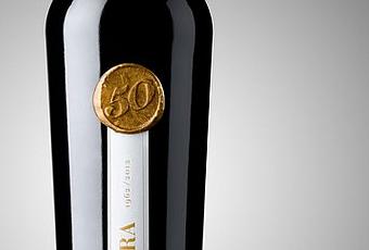 Un diseño especial para una ocasión especial, un packaging conmemorativo en el que los acabados y los formatos son decisivos. El carácter exclusivo de una edición limitada a 1.130 botellas y la madurez de la bodega se reflejan en un vidrio de estilo troncocónico muy pronunciado, en una etiqueta vertical poco convencional que estiliza la botella, en la ausencia de cápsula que le confiere un aire antiguo a la botella y sobre todo en un sello con lacre dorado que ejerce de orgulloso broche con el número 50 en su interior.