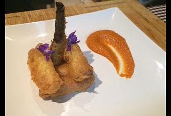 Poner una sartén al fuego con aceite de girasol y calentar el aceite.Heat the oil in a frying.Rebozar los calçots en la tempura y freír. Dip in batter the spring onions in the tempura and fry.