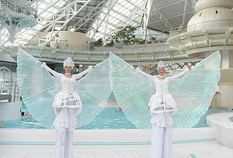 Deivas, de la Escola de dansa TC de Andorra y participantes del programa Got Talent de Telecinco, han sido las encargadas de abrir una tarde llena de animaciones con un espectáculo de danza urbana en la laguna central del Termolúdico. Al terminar, ha sido el momento de Zulandir, una pareja de zancudos, que se han encargado de llenar el spa de luz y danza y que, como las Deivas también han ofrecido su show en el escenario temporal que se ha instalado en la recepción del centro y en el interior del Termolúdico. En Inúu, el spa Adults Only de Caldea, los clientes han podido disfrutar de la actuación de una pareja de acróbatas, campeona del mundo de acrosport, que también se ha desplazado al Termolúdico.
