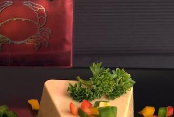 Fuera del fuego agregar la gelatina a la crema de marisco y atún. Luego la nata y procesar hasta convertir en una crema. Rectificar de sal y pimienta