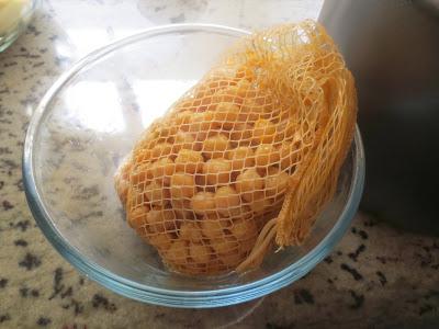 Sacamos la red con los garbanzos, así no andamos buscándolos por el caldo, ejej