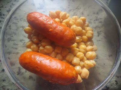 Todo ya preparadito, garbanzos remojados en agua 8 horas, y los demás ingredientes