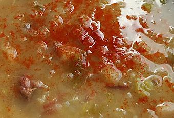 Poner en otra olla 2-3 cucharones de caldo y cocer en ese caldo los chorizos.