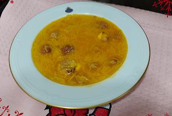 Este caldo es típico de Murcia a nosotros aquí en casa nos encanta ya que mi marido sus familiares son de la zona de Murcia. Tienen unos embutidos estupendos al igual que unos platos estupendos.INGREDIENTS PARA LAS PELOTAS:300gr de carne picada de terneraUna pechuga de polloMedia tira de longaniza rojaUn blancoUna tira de tocino ibéricoUn hígado de polloEspecias variadasPiñones3 huevos