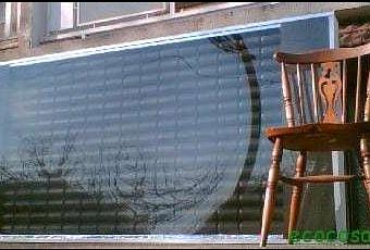 Finalmente, se pondrá en toda la parte frontal un plexiglass (policarbonato celular o acrílico) que servirá para aislar el calefactor y aumentar el poder de los rayos solares. Las cámaras que dejamos en los extremos se sellaran con una madera contrachapada pintada también de negro.