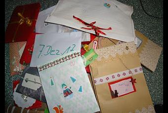 en el grupo de facebook en la celebración del calendario de Adviento, enviamos 12 trozos de tela con motivos navideños de 25x25 centimétros y 12 detalles y recibimos lo mismo,que iremos abriendo cada día hasta el 24 de Diciembre.Y estos son los primeros días:Al abrir la caja ,qué maravilla, me da pena abrirlos...Me encantan los envoltorios .No tengo arte para envolver regalos así que disfruto mucho viendo los envoltorios.