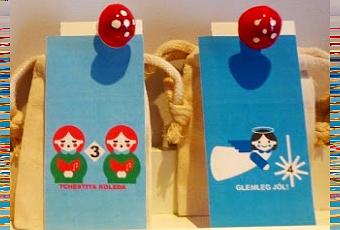 Este es nuestro calendario de adviento 2012. Los cartelitos de los días son obra de la diseñadora australiana Pilgrim Lee. Me encanta su estilo retro y alegre y, sobre todo, que las felicitaciones estén en un montón de idiomas. Lo compré por internet a través de su blog Draw Pilgrim. No hay que esperar a que lo envíe físicamente desde Australia, sino que te lo descargas tranquilamente en tu propia casa poco después de haberlo comprado. En realidad, este calendario está pensado para formar cajas de cerillas, pero yo no tenía tiempo de hacerlas, así que decidí poner las sorpresas en bolsas. Después, para unir la bolsa con el cartel, utilicé unas setas que había comprado por puro impulso hace unos días. ¡Feliz semana!