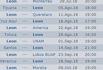 Para este torneo clausura 2018, el equipo del León jugará 8 partidos de local y 9 de visitante.Al conjunto esmeralda le toca abrir el torneo de visitante en el Estadio Universitario de los Tigres el sábado 21 de julio, mientras que para finalizar el torneo, el 24 de noviembre cerrará visitando al Pachuca.