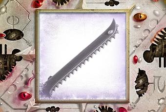 Aunque ahora el visor se ha caotizado visiblemente, lo que vemos ahí es bastante claro si te has cruzado con Eldar en otras ocasiones:Una espada sierra,muy seguramente empuñada por un Autarca o un miembro del Templo de los Escorpiones Asesinos.Si esta de nuevo es, creo yo, bastante fácil de adivinar