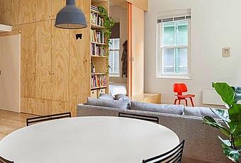 Se trata de una vivienda para un matrimonio joven con un hijo, en el que la madera es la gran protagonista junto con los colores pasteles y la selección de mobiliario.Un espacio abierto, que con el revestimiento de madera utilizado en toda la vivienda crea un cubículo que permite cerrar el dormitorio en los momentos necesarios