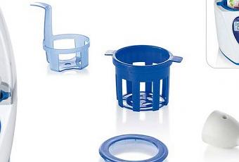 La campana de Warmy Advanced está fabricada con un material denominado tritan, un material plástico muy resistente que soporta muy bien los golpes y la temperatura, no contiene elementos químicos que puedan afectar a la salud del bebé como los ftalatos o el bisfenol A. El aparato es muy seguro, se desconecta automáticamente en modo reposo o cuando le falta agua para realizar el proceso de esterilización, en el hogar funciona con corriente eléctrica, para el coche cuenta con el correspondiente adaptador para conectarlo a la toma del mechero.