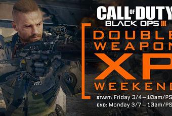Este periodo de doble experiencia de armas comienza hoy mismo a las 19:00 y concluye el lunes a las 19:00 hora española, en el multijugador competitivo de Call of Duty: Black Ops III, que está disponible tanto en Playstation 3 como en Playstation 4, aunque la primera mencionada tiene grandes recortes de rendimiento y contenidos, corriendo a 30 fps, en vez de los 60 acostumbrados, además de tener una calidad gráfica muy inferior a lo ofrecido en otros Call of Dutys de otros años en la misma generación y tampoco tiene acceso a los contenidos adicionales que se publicarán durante el año de vida del título.