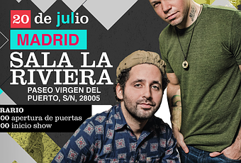 CALLE 1320 DE JULIO – MADRID - SALA LA RIVIERA Precio: 21 € - incluye una tarjeta descargable con el nuevo álbum Venta anticipada de entradas:Ticketea: https://www.ticketea.com/entradas-calle-13-madrid/Entradas.com: http://www.entradas.com/entradas/evento.do?idEvento=216191&identidad=1 Apertura de puertas: 20h00 Hora: 21h00 En directo en Madrid presentando su nuevo álbumMulTIVIRAL La compra de la entrada incluye un regalo tarjeta descargable con el nuevo disco de Calle 13 y acceso a otros contenidos exclusivos. La tarjeta se entregará se entregará el día del concierto en la puerta.