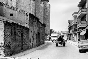 Podéis apreciar el contraste de las viviendas antiguas del lado izquierdo con los pisos de los años 70 en la derecha. Es como si la calle separa la Fuenlabrada antigua con la nueva.