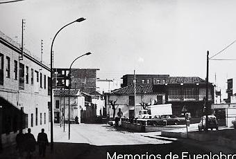 En frente vemos la parte final de la calle de la Plaza y a la derecha la plazoleta con la Fuente de la Cruz de Luisa. A la izquierda vemos el comienzo de la actual discoteca Vogue y la Casa-Cuartel de la Guardia Civil haciendo esquina.