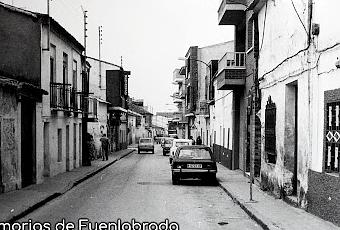 A la derecha, vemos la fila de aparcamiento tal cual está hoy en día. Vemos también una señal de advertencia zona escolar, ya que Los Arcos estaba en uso como centro educativo.