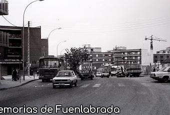 A la izquierda vemos un trocito de fachada con un balcón formado por cristales, siendo hoy en día la calle de Leganés 1. Justo a la derecha, el local de venta (posible piso piloto) de viviendas de los Hermanos Andrés y un quiosco. Vemos un primer bloque del barrio de San Andrés, siendo la calle de Pelayos.
