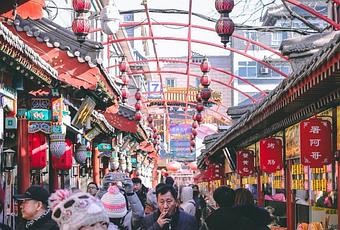 Con esta opción, pasas primero por todos los centros comerciales y tiendas, antes de llegar a la entrada de la Calle de Snacks Wangfujing, que te quedará del lado derecho de la calle.