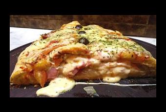Dicho en otras palabras es una especie de una gran empanada rellena que combina la mozzarella, el jamón cocido y las cebollas salteadas, la cual resulta en una explosiva mezcla de sabores.