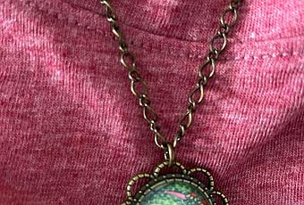 Una nueva manualidad llega a manos de la Tortuga: compré abalorios y me hice un camafeo así de chulo y de resultón. Necesario unos alicates pequeños y silicona líquida (transparente).