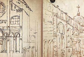 4 dibujos de Canaletto, dibujados en Venecia con cámara oscura. Gallerie dell'Accademia.