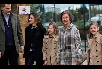La reina Sofía, de la mano de sus nietas, reconciliada con la reina Letizia, llega al hospital donde se recupera don Juan Carlos.