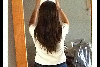 No tiene muy buena calidad la imagen aunque la hice con el ipad pero se ve como lo tenia de largo, unos cuatro o cinco dedos por debajo del pecho.Y después del paso por la peluquería me quedo así: (no hagáis caso de mi cara ojerosa, jaja)
