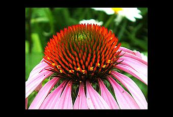 La equinácea es una planta originaria de América del Norte. Esta planta contiene un tipo de azúcares (polisacáridos) encargados de estimular la producción de glóbulos blancos así como de evitar la propagación de los gérmenes. La equinácea posee además otros compuestos activos (alcamidas y derivados del ácido cafeico) que le confieren propiedades antivíricas, antiinflamatorias y cicatrizantes.