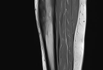 Existen cambios en la morfología e intensidad del hueso esponjoso de la tibia que involucra la diáfisis proximal y tercio medio con áreas de baja intensidad en el hueso esponjoso medular así como de mayor intensidad, la cortical al parecer se encuentra conservada.