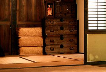 En este sentido, en la vivienda, el almacenamiento de indumentaria se convierte en un problema. Según Kazuko Koizumi, directora del Departamento de Arte del Museo del Mueble de Tokio, no fue hasta el período Edo que nacieron los primeros arcones de almacenaje para facilitar la sistematización y el fácil acceso a las cosas. Se dice que fueron las personas que se enriquecieron con la rápida mejora en la capacidad de producción agrícola las que podían almacenar ropa.