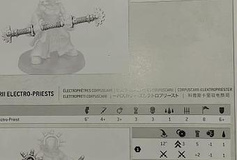 Al parecer, ya se han visto algunos cambios en algunas unidades de infantería del Adeptus Mechanicus para 9ª ed de W40K. En este caso concreto, son los Electro-Sacerdotes Corpuscarii y los Fulgurite del Adeptus Mechanicus, que parece que reciben algunos cambios menores en su armamento. Bueno, no tan pequeños: El casi de los Fulgurite, el báculo que llevan pasan de hacer 1d3 de Daño a hacer directamente 2 de daño, mientras que los Corpuscarii ven como les cambian la FP de sus guanteletes.