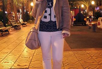En cuanto al look: un white and blue con un jersey que os tengo que mostrar mejor porque es una pasada, slippers azules también y cazadora biker camel, súper calentita, además de mi nuevo bolso crema. En cuanto al bolso he de decir que me lo compré porque, aparte de que se me rompió el schatel bag marrón que tanto me gustaba, creo que este tipo de bolsos son todo terreno y vienen genial para días largos en los que debes llevar entre otras cosas un neceser y el tuper para comer jaja.