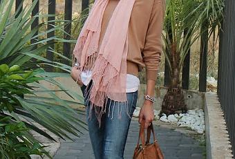 ¡Hola! Cómo me gustan los pañuelos, fulares, bufandas... Me encanta usarlos no sólo para proteger mi garganta que siempre anda de aquella manera sino como los protagonistas del look, en ocasiones elijo prendas muy sencillas para que ellos sean los que centren toda la atención. Ya sabéis que en verano siempre llevo alguno en el bolso pero es ahora cuando realmente disfruto de ellos, éste no sé como sigue vivo con la batalla que lleva. En cuanto al look de hoy dos colores que para mí van a la perfección Camel + Rosa palo, el suéter es de pico y un poco oversize perfecto para entretiempo y para llevarlo tanto con camisas como con camisetas, las bailarinas son de esas cosas que encuentras en Primark y que no te crees que sean de allí.