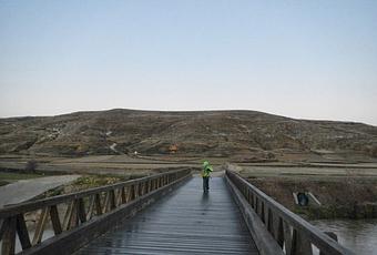 Por la calle Real de Poniente salimos de Castrojeriz para afrontar la subida al Alto de Mosterales. El acusado repecho comienza metros después de cruzar el río Odrilla por un puente de madera. Una vez arriba, encontramos una zona de descanso y podemos disfrutar de unas magníficas vistas de Castrojeriz y su comarca.