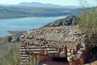 Bunker sobre el reculaje del Tajo en la desembocadura deel JébaloAbandonamos Las Herencias tomando el camino de Belvís que asciende desde la parte oriental del casco urbano.