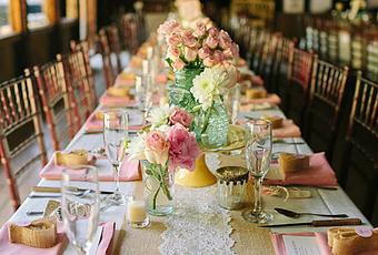 A nosotras nos encanta porque también podéis realizar diferentes combinaciones: arpillera con encaje o con tapetes de ganchillo sobre un mantel liso, o directamente sobre la mesa. Las posibilidades son infinitas y darán lugar a unos centros de mesa realmente impresionantes.