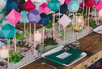Hoy en el blog, os traigo un DIY, con el que poder sorprender a amigos, familiares y demás invitados en vuestra boda, en vuestra cena, o el día de navidad. Se trata de un bosque colorista de aires modernistas y muy geométricos, que son fáciles de montar, ya que además, nos ayudaran a sacar la vena colorista, e infantil en el que montar formas geométricas con cartulina y pegamento.
