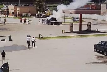 En horas de la tarde de este miércoles un camión 350 se incendió en la estación de servicio Valle Verde mientras surtía gas.