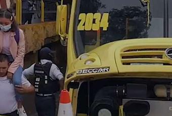 Fueron elementos de la Secretaría de Seguridad y Protección Ciudadana quienes ayudaron a las personas a salir del camión y llevarlas a una zona segura, mientras abanderan el atasco del camión en espera de una grúa que pueda sacarlo del desnivel.