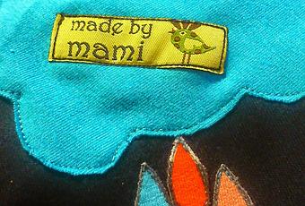 En la espalda he hecho una aplicación, como últimamente, a lo loco, sin fliselina y con etiqueta hecho por Mami. Me encanta esta etiqueta y coserla en todas sus prendas.