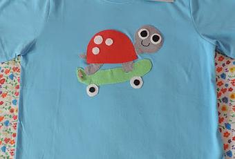 Siempre lo digo, me encanta participar en retos, pues te hace usar la imaginación, la creatividad, hacer algo que de normal ni te lo hubieses planteado, este es mi caso, nunca se me hubiese ocurrido hacer una tortuga, y la verdad es que me ha encantado el resultado, como podemos usar cualquier técnica, he decidido hacer una camiseta con aplique de tortuga en fieltro,